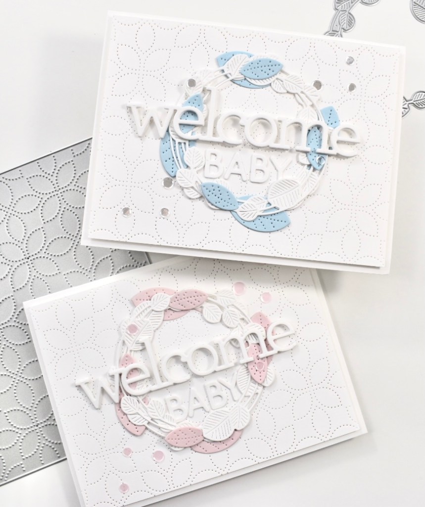 The Simon Says Stamp Hello Beautiful release is amazing, and I’m loving my Welcome die! I really can’t stop playing with it! I rarely, and I mean rarely, ever make baby cards, but I think these turned out super cute!