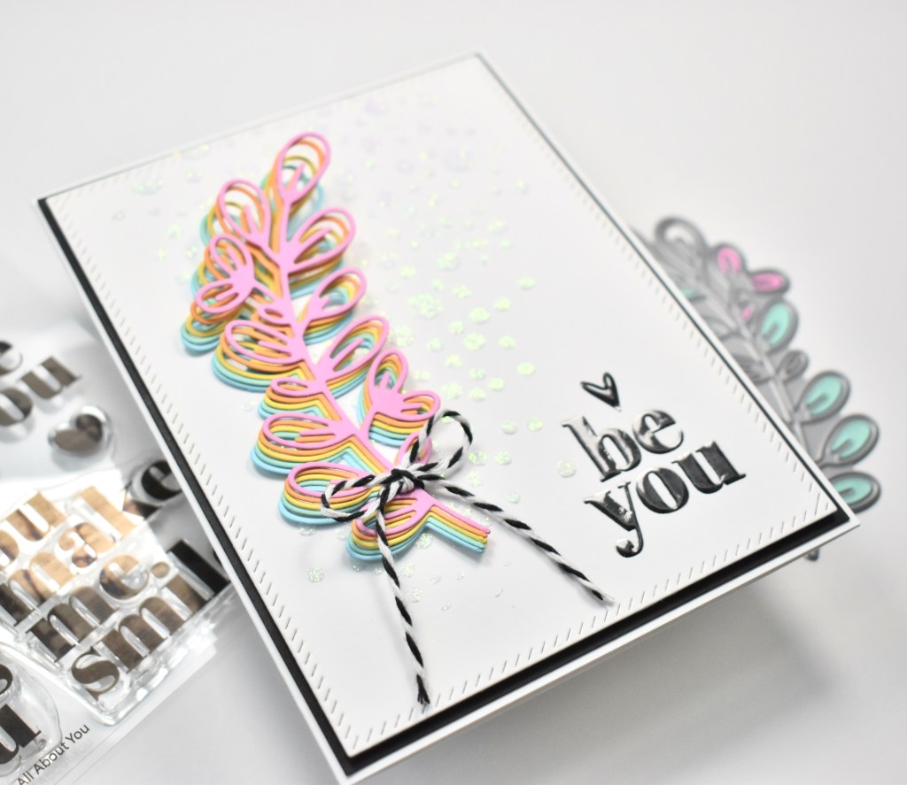 Hey there! How’s it going today? I’m super excited about the new SSS Make Magic release! Have you checked it out? There are so many awesome things! I know, I know, I say that about every release, but it’s true! There’s an amazing new sentiment set called All About You, and today’s card is featuring a sentiment from that set along with an older leaf favorite of mine!