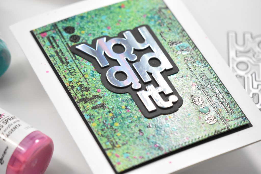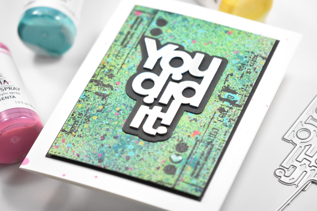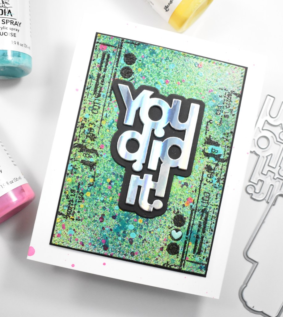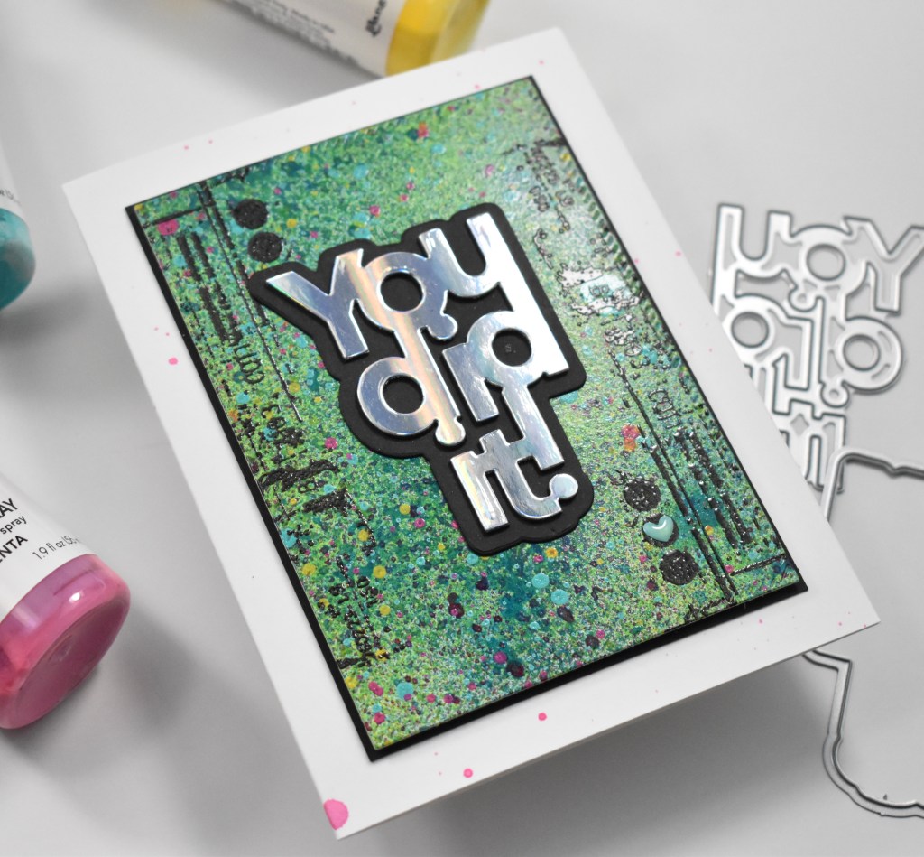Hello Crafty Friends and thanks so much for stopping by! I’m participating in an Instagram Hop today to celebrate the newest Simon Says Stamp release, Yay You. There’s loads of inspiration and lots of chances to win a gift card by commenting along the hop, so be sure to check that out! I’m referring to today’s card as grungy because it mixes a lot of different elements, with a focus on the You Did It sentiment. So let’s get into the details!