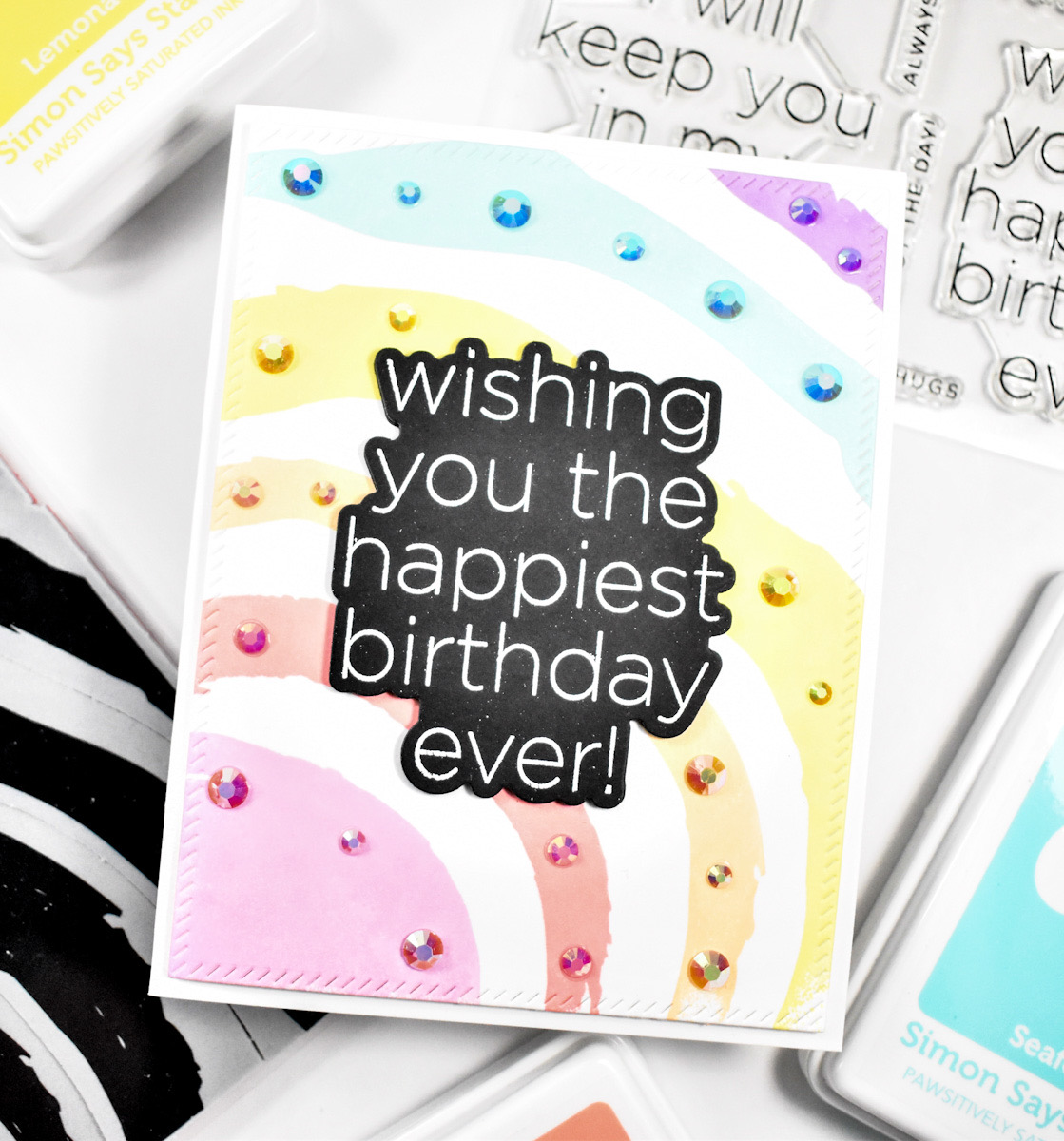 Hello Friends, and thank you so much for stopping by. Are you getting lots of inspiration from Simon Says Stamp’s latest release, Dear Friend? What are your favorites from this release? I’ve really enjoyed playing with the Painted Rainbow background stamp, and today’s post features another project using that stamp. So, let’s run through the details!