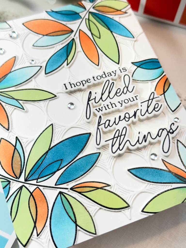 Hello Fellow Crafter, and thank you so much for swinging by! I’m back today with a card featuring the new Friendship Leafy Cluster from Simon Says Stamp’s latest release, Sweetheart. This really is becoming one of my favorite sets! I love the fact that it’s a product suite that includes a stamp, stencil and die! Let’s run through the details for this one, shall we?