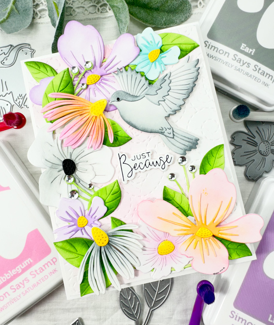 Hello Crafty Friends! I appreciate you stopping by! Today, I’m participating in an Instagram Hop to celebrate Simon Says Stamp’s latest release, Splendor, so you’ll want to head on over there to comment along the hop for your chance to win a $25 gift card. Today’s project is featuring the new Beautiful Dove die, and I knew that I wanted to pair it with a bunch of flowers. So, let’s run through all the details for this one!