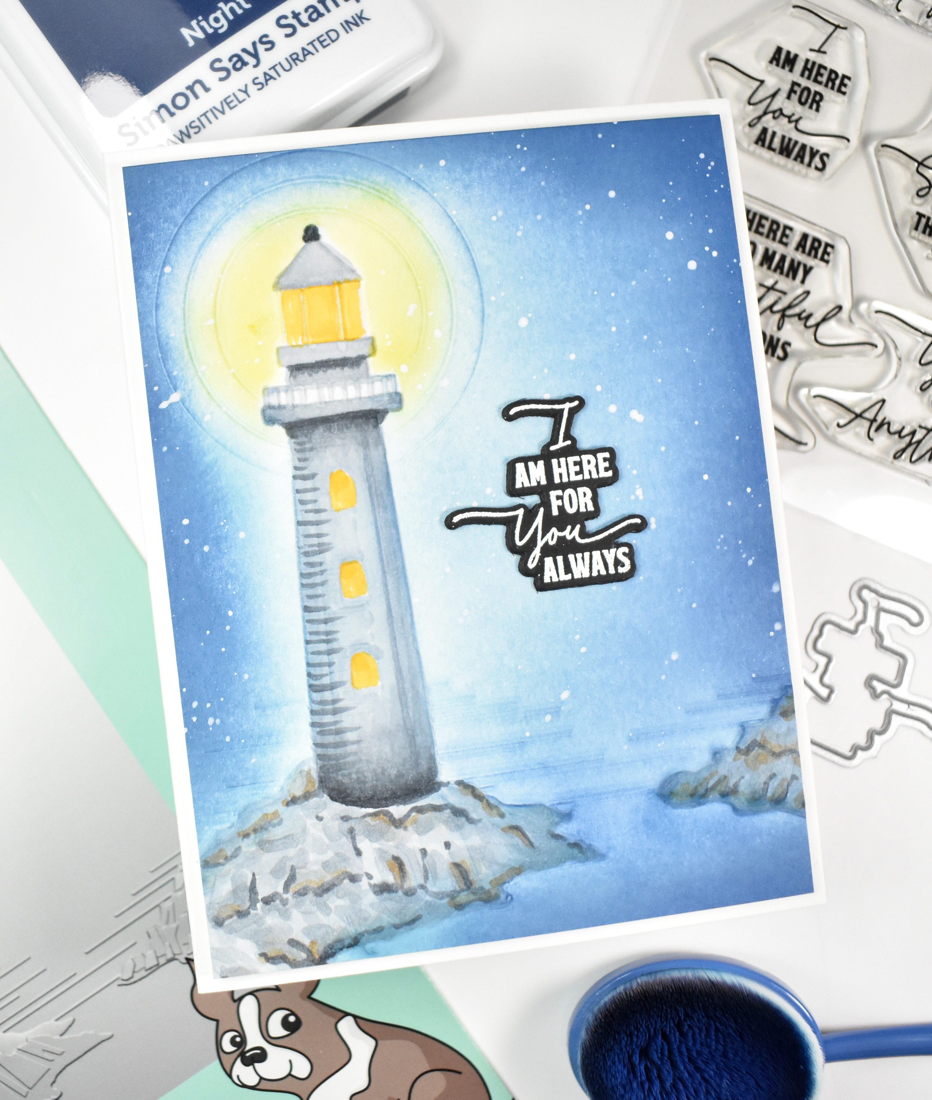 Hello Friends and thanks for stopping by! I’m back today with a project featuring the new Contemporary Lighthouse Embossing Folder from Simon’s latest release, Friend Like You. Let’s go ahead and run through the details for this one.