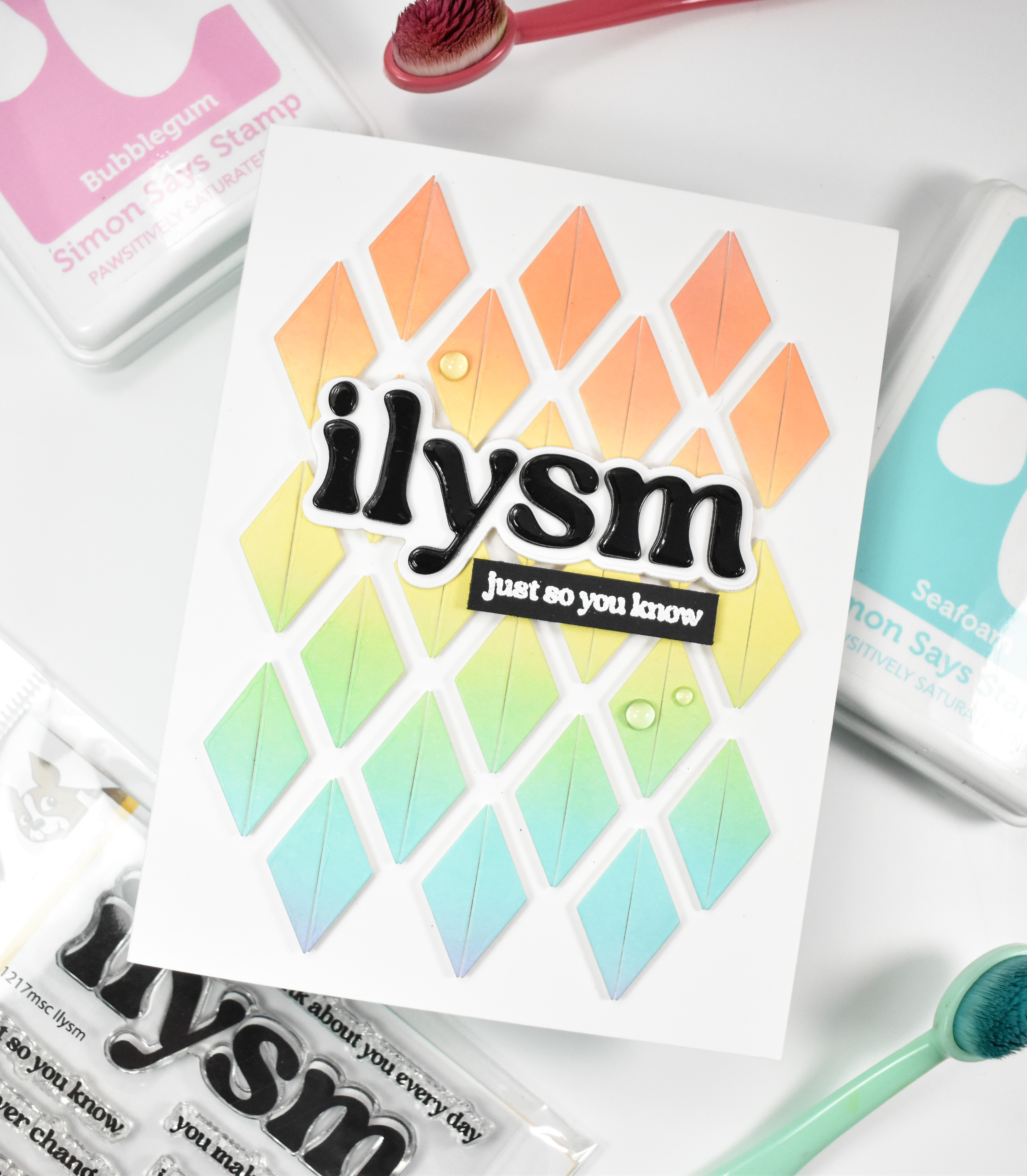 Hello Crafty Friends, and welcome back to my blog! I’m back today with a card featuring the new Dual Diamonds from Simon’s latest release, Happy Camper. This card is also featuring the new ilysm stamp and die set, so let’s go ahead and go through the details!