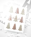 I began this project by die cutting the trees several times from Green Apple, Fern and Forest cardstock colors. I then did some ink blending on the edges of the lighter trees using Field and Artichoke inks.