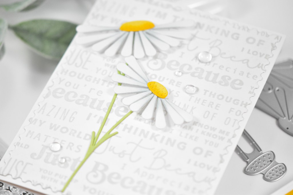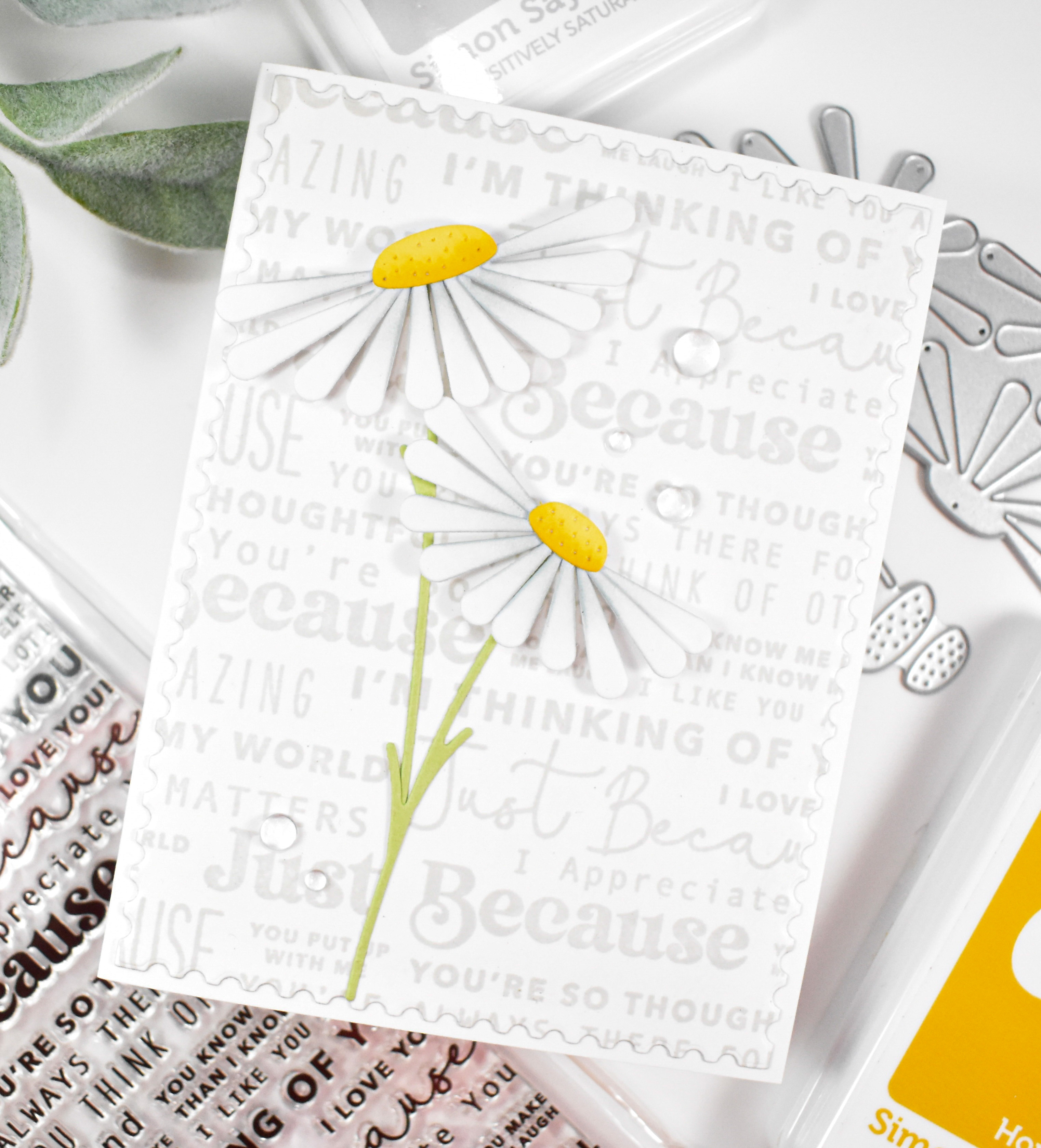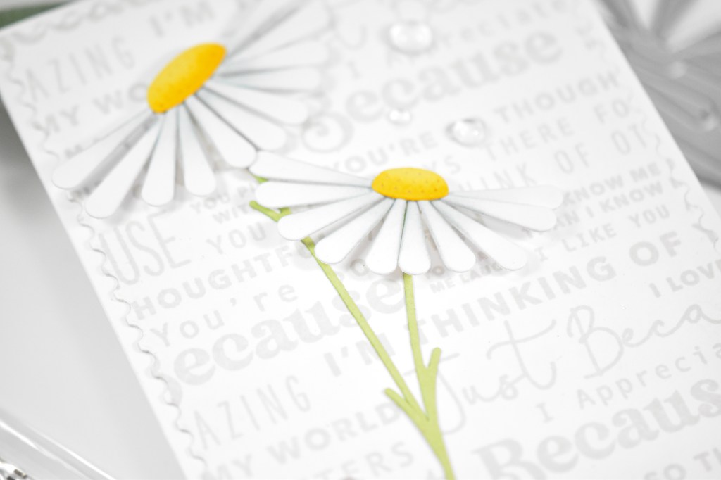 Hello Friends, and thanks for stopping by to check out today’s project featuring a couple of products from Simon, including the Tilted Daises. This was a quick one, so let’s zoom through the details.