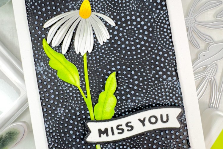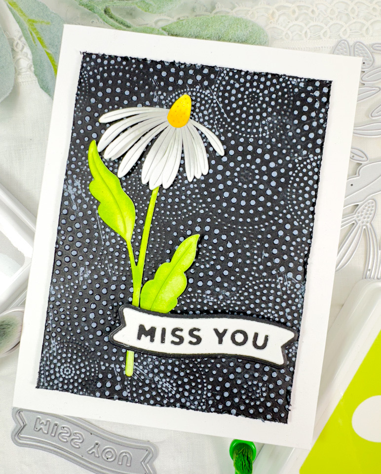 The panel was then adhered to a black splattered card base with foam tape, for added dimension, to finish up.