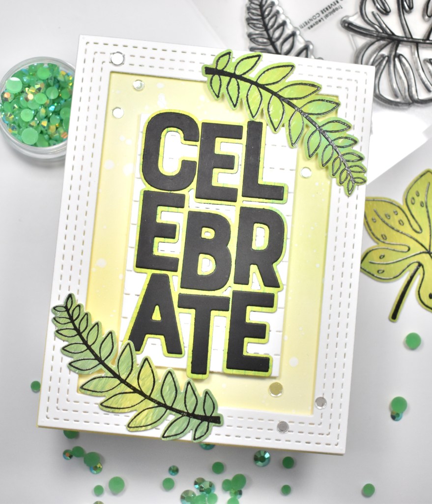 Hello Friends and welcome back! Thanks for stopping by! Today’s card is featuring the new Tropical Leaves from Reverse Confetti’s July release! It’s a super simple card, but I love the greens and yellows! Let’s get into it!