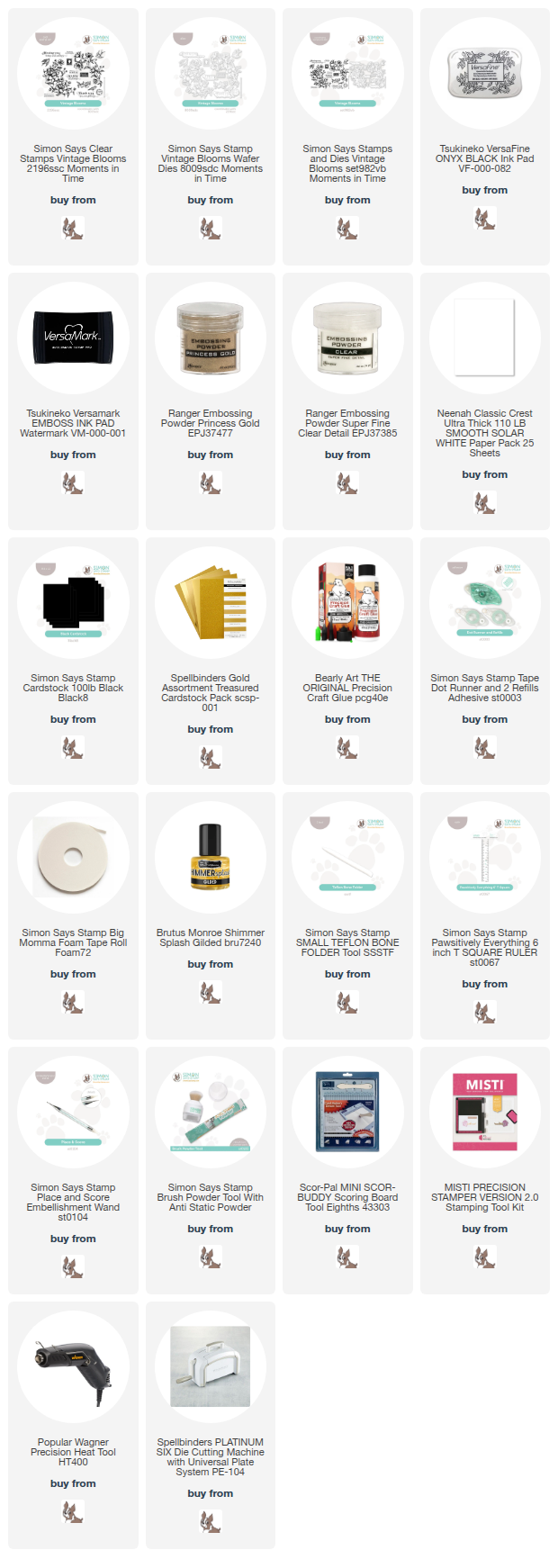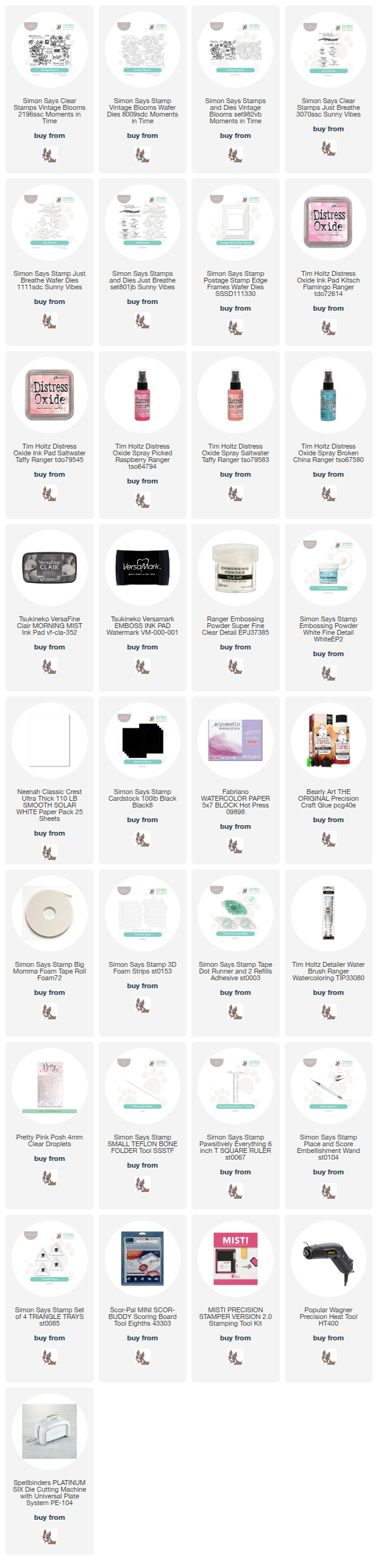 Hello and welcome back, Friends! Today’s project is featuring the new Vintage Blooms from Simon’s latest release, Moments In Time. This set has two larger blooms, but I opted to use just one for this project. Let’s run through the details!