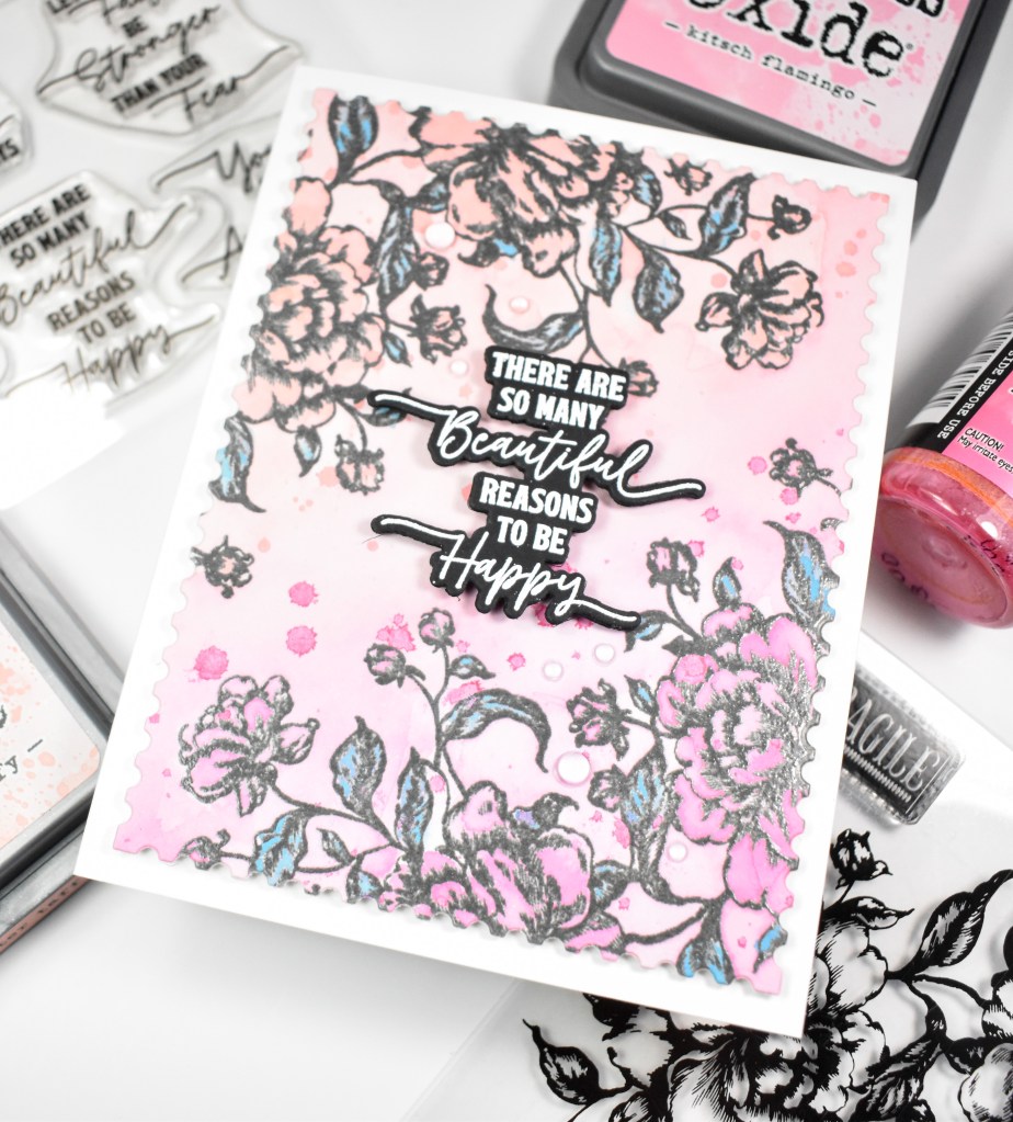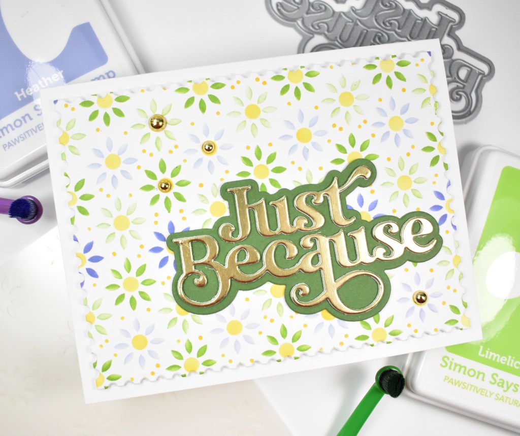 Hello Friends, and welcome back! I hope you’re doing well and having a great day! Today’s project is featuring the new Mosaic Petals Stencil from Simon’s latest release, You Are My Favorite. Let’s run through the details, shall we?