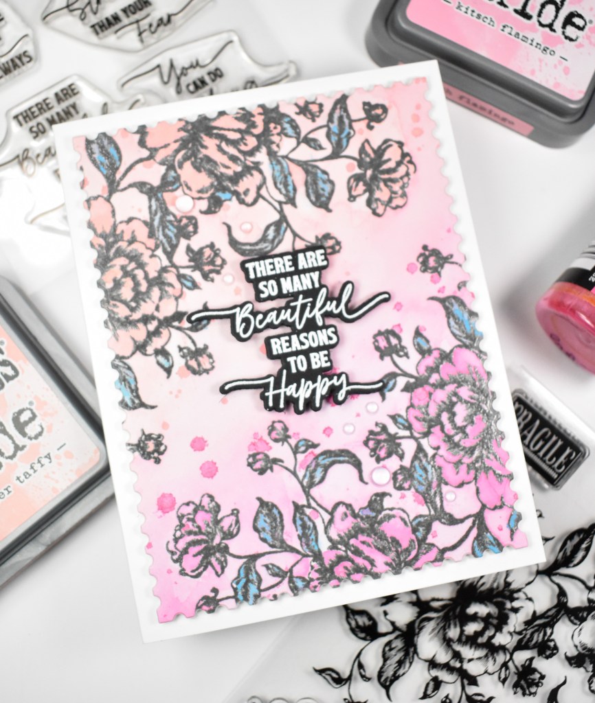Hey There! So glad that you stopped by! For today’s project, I’m revisiting my desire for dark, dramatic Pinkfresh florals! I really like how this one turned out, so let’s go ahead and go through the details!