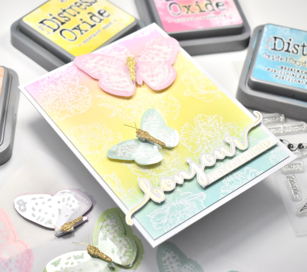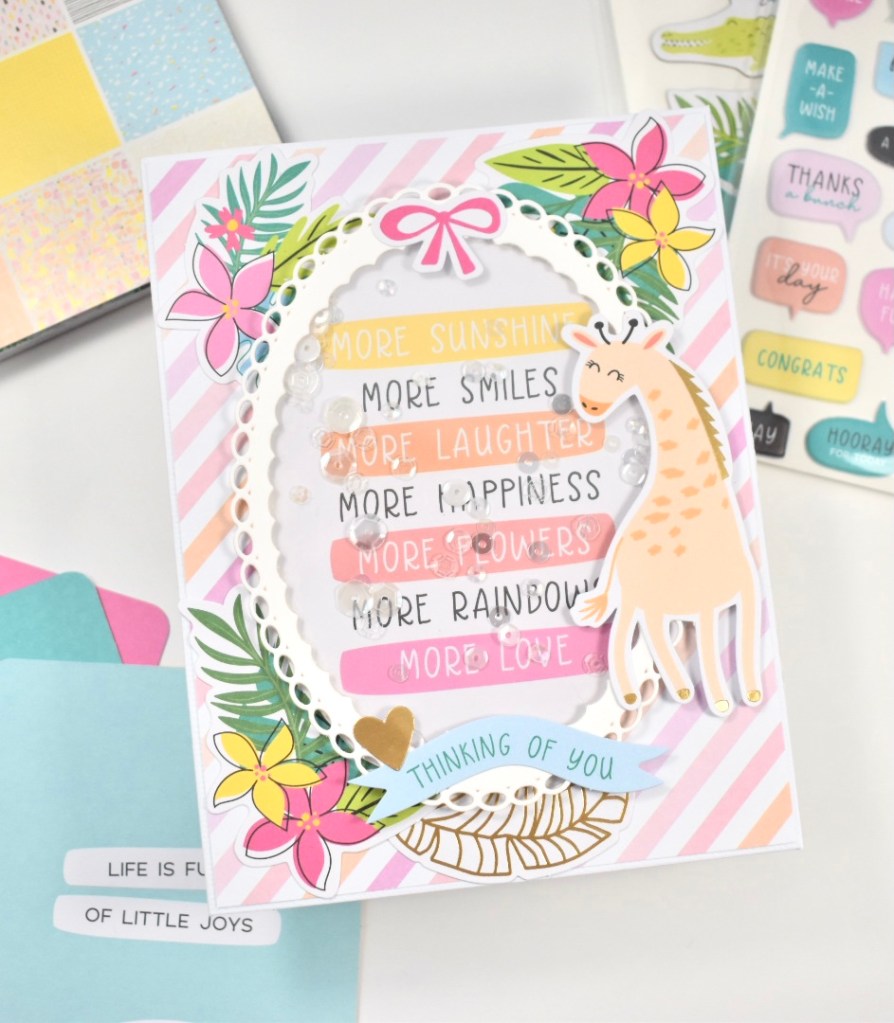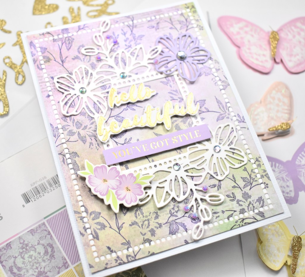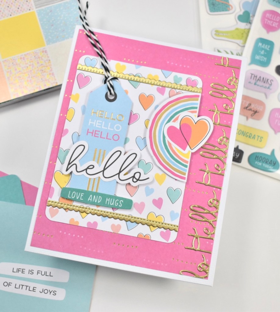 When working with the card kits, my favorite things are the patterned papers, stickers and ephemera pieces, so I always end up making cards using those elements!