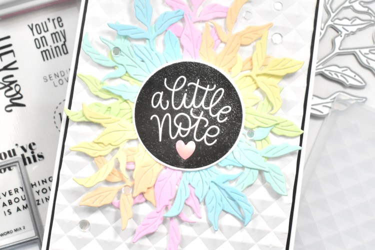 The panel was then adhered to a black panel using SSS Dot Tape Runner and that was then adhered to the card base using foam tape for added dimension.